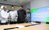 Co-Founder & Managing Director ALAMI Group, Bembi Triawan Juniar (kanan) menyaksikan penandatanganan kerja sama antara Chief Marketing Officer ALAMI Group Tengku Ferdi (tengah) dan Wakil Ketua Umum Asosiasi Logistik & Forwarder Indonesia (ALFI) Jawa Barat Irfan Hakim di Jakarta, Rabu (2/11/2022). Kesepakatan ini sebagai wujud dukungan ALAMI dalam pengembangan layanan jasa forwarding dan logistik di dalam dan luar negeri sebagai salah satu sektor yang berkontribusi dalam pembangunan ekonomi nasional. (FOTO : Dok ALAMI)