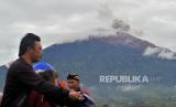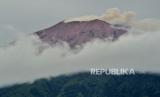 REPUBLIKA.CO.ID, JAMBI -- Gunung Kerinci mengembuskan gas dan material ke udara yang terlihat dari Kayu Aro, Kerinci, Jambi, Sabtu (5/11/2022). Gunung Kerinci yang masih berada pada level II (waspada) itu kembali mengalami erupsi.