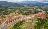 Foto udara suasana ruas Jalan Tol Cileunyi-Sumedang-Dawuan (Cisumdawu) di Pamulihan, Kabupaten Sumedang, Senin (7/11/2022). Dua ruas Jalan Tol Cisumdawu Seksi 2 sepanjang 17,05 km serta seksi 3 sepanjang 4,05 km telah menjalani tahapan Uji Laik Fungsi (ULF) dan ditargetkan beroperasi pada akhir tahun 2022 guna mendukung jalur Natal 2022 dan Tahun Baru 2023. Republika/Abdan Syakura (FOTO : REPUBLIKA/ABDAN SYAKURA)