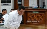 Terdakwa kasus dugaan pembunuhan berencana terhadap Brigadir Nofriansyah Yosua Hutabarat, Kuat Maruf saat dihadirkan secara bersama dengan terdakwa Richard Eliezer dalam sidang pemeriksaan saksi di Pengadilan Negeri Jakarta Selatan, Jakarta, Senin (7/11/2022). Jaksa penuntut umum (JPU) menghadirkan sejumlah saksi diantaranya petugas supir ambulan, petugas PCR, dan pegawai sejunlah provider telekomunikasi seluler. (FOTO : Republika/Thoudy Badai)