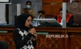 Saksi petugas PCR Isbah Azka Tilawah saat memberikan keterangan saksi dalam persidangan dengan terdakwa kasus dugaan pembunuhan berencana terhadap Brigadir Nofriansyah Yosua Hutabarat, Richard Eliezer, Ricky Rizal dan Kuat Maruf di Pengadilan Negeri Jakarta Selatan, Jakarta, Senin (7/11/2022). Jaksa penuntut umum (JPU) menghadirkan sejumlah saksi diantaranya petugas supir ambulan, petugas PCR, dan pegawai sejunlah provide telekomunikasi seluler. (FOTO : Republika/Thoudy Badai)