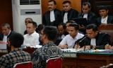 Terdakwa kasus dugaan pembunuhan berencana terhadap Brigadir Nofriansyah Yosua Hutabarat, Richard Eliezer (kedua kanan) bersama Ricky Rizal (kedua kiri) saat dihadirkan secara bersama dalam sidang pemeriksaan saksi di Pengadilan Negeri Jakarta Selatan, Jakarta, Senin (7/11/2022). Jaksa penuntut umum (JPU) menghadirkan sejumlah saksi diantaranya petugas supir ambulan, petugas PCR, dan pegawai sejunlah provider telekomunikasi seluler. (FOTO : Republika/Thoudy Badai)