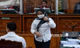 Saksi asisten rumah tangga (ART) Susi bersiap memberikan keterangan dalam sidang perkara dugaan pembunuhan berencana terhadap Brigadir Nofriansyah Yosua Hutabarat dengan terdakwa Ferdy Sambo dan Putri Candrawathi di Pengadilan Negeri Jakarta Selatan, Jakarta, Selasa (8/11/2022). (FOTO : Republika/Thoudy Badai)