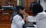 Terdakwa kasus dugaan pembunuhan berencana terhadap Brigadir Nofriansyah Yosua Hutabarat, Putri Candrawathi (kanan) mengelus pipi saksi asisten rumah tangga (ART) Susi (kiri) saat sebelum memberikan keterangan saksi dalam sidang lanjutan di Pengadilan Negeri Jakarta Selatan, Jakarta, Selasa (8/11/2022). (FOTO : Republika/Thoudy Badai)