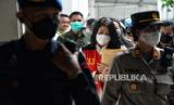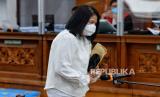 Terdakwa kasus dugaan pembunuhan berencana terhadap Brigadir Nofriansyah Yosua Hutabarat, Putri Candrawathi berjalan mengenakan rompi tahanan saat sidang diskors di Pengadilan Negeri Jakarta Selatan, Jakarta, Selasa (8/11/2022). Jaksa penuntut umum (JPU) kembali menghadirkan asisten rumah tangga Ferdy Sambo dan Putri Candrawathi, Susi bersama 9 orang lainnya untuk dimintai keterangan saksi dalam sidang perkara dugaan pembunuhan berencana terhadap Brigadir J. Republika/Thoudy Badai (FOTO : Republika/Thoudy Badai)