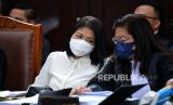 Terdakwa kasus dugaan pembunuhan berencana terhadap Brigadir Nofriansyah Yosua Hutabarat, Putri Candrawathi (kiri) saat menjalani sidang lanjutan di Pengadilan Negeri Jakarta Selatan, Jakarta, Selasa (8/11/2022). Jaksa penuntut umum (JPU) kembali menghadirkan asisten rumah tangga Ferdy Sambo dan Putri Candrawathi, Susi bersama 9 orang lainnya untuk dimintai keterangan saksi dalam sidang perkara dugaan pembunuhan berencana terhadap Brigadir J. Republika/Thoudy Badai (FOTO : Republika/Thoudy Badai)