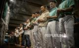 Jamaah melaksanakan shalat khusuf atau shalat gerhana bulan di Masjid Amir Hamzah Taman Ismail Marzuki, Jakarta, Selasa (8/11/2022). Shalat gerhana bulan dilaksanakan seusai terjadi puncak gerhana bulan total pada pukul 18.00 WIB. Menurut Badan Riset dan Inovasi Nasional (BRIN) proses gerhana bulan sebagian dan total berlangsung selama 3 jam, 39 menit, dan 50 detik. Namun fenomena gerhana bulan tersebut tidak dapat dilihat secara langsung akibat hujan yang terjadi di Jakarta. Republika/Thoudy Badai (FOTO : Republika/Thoudy Badai)