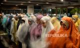 Jamaah melaksanakan shalat khusuf atau shalat gerhana bulan di Masjid Amir Hamzah Taman Ismail Marzuki, Jakarta, Selasa (8/11/2022). Shalat gerhana bulan dilaksanakan seusai terjadi puncak gerhana bulan total pada pukul 18.00 WIB. Menurut Badan Riset dan Inovasi Nasional (BRIN) proses gerhana bulan sebagian dan total berlangsung selama 3 jam, 39 menit, dan 50 detik. Namun fenomena gerhana bulan tersebut tidak dapat dilihat secara langsung akibat hujan yang terjadi di Jakarta. (FOTO : Republika/Thoudy Badai)