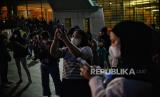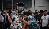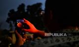 Warga mengamati simulasi real time gerhana bulan melalui aplikasi stelarium di area Taman Ismail Marzuki, Jakarta, Selasa (8/11/2022). Menurut Badan Riset dan Inovasi Nasional (BRIN) gerhana bulan total berlangsung pada pukul 18.00 WIB sementara untuk proses gerhana bulan secara keseluruhan berlangsung selama 3 jam, 39 menit, dan 50 detik. Namun fenomena gerhana bulan tersebut tidak dapat dilihat secara langsung di Jakarta akibat hujan. Republika/Thoudy Badai (FOTO : Republika/Thoudy Badai)