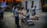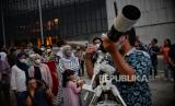 Warga melihat posisi gerhana bulan total menggunakan teleskop di area Taman Ismail Marzuki, Jakarta, Selasa (8/11/2022). Menurut Badan Riset dan Inovasi Nasional (BRIN) gerhana bulan total berlangsung pada pukul 18.00 WIB sementara untuk proses gerhana bulan secara keseluruhan berlangsung selama 3 jam, 39 menit, dan 50 detik. Namun fenomena gerhana bulan tersebut tidak dapat dilihat secara langsung di Jakarta akibat hujan. Republika/Thoudy Badai (FOTO : Republika/Thoudy Badai)