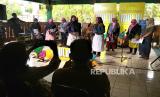 Buruh gendong membacakan puisi bersama saat Festival Sastra Yogyakarta 2022 di Pintu Timur Pasar Beringharjo, Yogyakarta, Rabu (9/11/2022). (FOTO : Republika/Wihdan Hidayat)