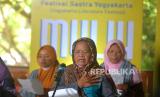 REPUBLIKA.CO.ID, YOGYAKARTA -- Buruh gendong membacakan puisi bersama saat Festival Sastra Yogyakarta 2022 di Pintu Timur Pasar Beringharjo, Yogyakarta, Rabu (9/11/2022).