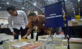 Menteri Desa, Pembangunan Daerah Tertinggal dan Transmigrasi (PDTT) Abdul Halim Iskandar memilih buku-buku pada pameran Indonesia International Book Fair (IIBF) 2022 di JCC, Senayan, Jakarta, Rabu (9/11/2022). Pemeran IIBF 2022 yang berlangsung 9-13 November 2022 tersebut diikuti oleh 134 peserta dari dalam dan luar negeri dengan target jumlah pengunjung 25 ribu orang. Pameran IIBF 2022 juga menghadirkan zona kakap dimana buku-buku menarik dijual dengan diskon hingga 80 persen. Republika/Prayogi. (FOTO : Republika/Prayogi)