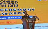 Ketua Umum Ikatan Penerbit Indonesia (Ikapi) Arys Hilman Nugraha memberikan sambutan pada pameran Indonesia International Book Fair (IIBF) 2022 di JCC, Senayan, Jakarta, Rabu (9/11/2022). Pemeran IIBF 2022 yang berlangsung 9-13 November 2022 tersebut diikuti oleh 134 peserta dari dalam dan luar negeri dengan target jumlah pengunjung 25 ribu orang. Pameran IIBF 2022 juga menghadirkan zona kakap dimana buku-buku menarik dijual dengan diskon hingga 80 persen. Republika/Prayogi. (FOTO : Republika/Prayogi)