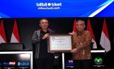 Direktur Pengawasan Transaksi dan Kaptuhan Bursa Efek Indonesia Kristian S Manullang (kanan) memberikan sertifikat pencatatan kepada CEO & Co-Founder Blibli Kusumo Martanto (kiri) pada acara Pencatatan Perdana Saham PT Global Digital Niaga Tbk (Blibli) di Bursa Efek Indonesia (BEI), Jakarta, Selasa (8/11/2022). (FOTO : Istimewa)