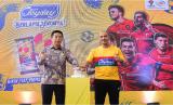Perwakilan Manajemen Yili Grup sekaligus Presiden Direktur Yili Indonesia Dairy, Yu Miao (kiri) bersama legenda sepakbola Indonesia Kurniawan Dwi Yulianto