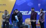 Menteri BUMN Erick Thohir berbincang dengan Menteri Perdagangan Zulkifli Hasan dan Menteri Pendayagunaan Aparatur Negara dan Reformasi Birokrasi (MenPAN-RB) Abdullah Azwar Anas dalam peluncuran buku biografi berjudul (Bukan) Kisah Sukses Erick Thohir di Indonesia International Book Fair, JCC, Senayan , Jakarta, Kamis (10/11/2022). Pelucuran buku setebal sekitar 160 halaman tersebut dihadiri oleh sejumlah pejabat publik, atlet hingga para direksi BUMN. Buku ini menceritakan perjalanan hidup Erick Thohir sejak bangku sekolah hingga sekarang menjabat sebagai menteri BUMN. Republika/Prayogi. (FOTO : Republika/Prayogi)