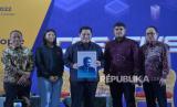 Menteri BUMN Erick Thohir (tengah) bersama Ekonom Dradjad Wibowo (kiri), Mantan Pebulu Tangkis Nasional Greysia Polii (dua kiri), Penulis Buku (Bukan) Kisah Sukses Erick Thohir Abdullah Sammy (dua kanan) dan Pemimpin Redaksi Harian Kompas Sutta Dharmasaputra berfoto dalam peluncuran buku biografi berjudul (Bukan) Kisah Sukses Erick Thohir di Indonesia International Book Fair, JCC, Senayan , Jakarta, Kamis (10/11/2022). Pelucuran buku setebal sekitar 160 halaman tersebut dihadiri oleh sejumlah pejabat publik, atlet hingga para direksi BUMN. Buku ini menceritakan perjalanan hidup Erick Thohir sejak bangku sekolah hingga sekarang menjabat sebagai menteri BUMN. Republika/Prayogi. (FOTO : Republika/Prayogi)