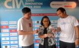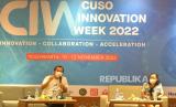 REPUBLIKA.CO.ID,YOGYAKARTA -- SVP of Business Expansion and Regional Sales DOKU Irfan Burhan (dari kiri ke kanan), Ketua Pengurus CU Sawiran Kristien Yuliarti, dan Founder & CEO CUSO Digital Indonesia Hery Iskandar berdiskusi tentang aplikasi CU Sawiran Mobile yang didukung oleh CUSO di Yogyakarta, Jumat (11/11/2022).