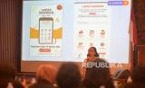 Ketua Pengurus CU Sawiran Kristien Yuliarti menjelaskan tentang aplikasi pembayaran CU Sawiran Mobile yang didukung oleh CUSO di Yogyakarta, Jumat (11/11/2022). Dalam rangka mewujudkan digitalisasi pembayaran Koperasi Simpan Pinjam di Indonesia, CUSO bermitra dengan DOKU untuk menerapkan pencatatan digital yang transparan, penyetoran dan pencairan dana simpanan melalui aplikasi. (FOTO : Republika/Wihdan Hidayat)