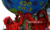 Dalam aksi tersebut, mereka menuntut kepedulian negara-negara peserta Konferensi Tingkat Tinggi (KTT) G20 untuk melakukan transisi energi yang berkelanjutan dan berkeadilan.