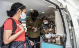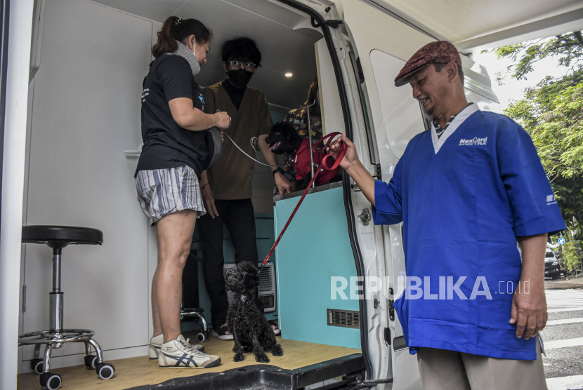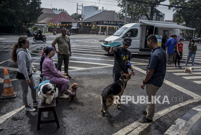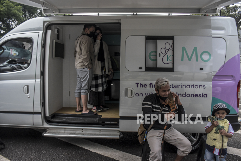 REPUBLIKA.CO.ID, BANDUNG -- Warga berkonsultasi dengan dokter hewan di K+ Mobile Vet di Jalan Cilaki, Bandung Wetan, Kota Bandung, Ahad (13/11/2022). K+ Mobile Vet tersebut merupakan mobil klinik hewan pertama di Indonesia yang bertujuan untuk menjangkau serta memudahkan warga mendapatkan pelayanan dan pemeriksaan kesehatan hewan peliharaanya. Republika/Abdan