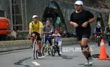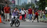 Warga beraktivitas saat Hari Bebas Kendaraan Bermotor (HBKB) di kawasan Bundaran Hotel Indonesia, Jakarta, Ahad (13/11/2022). Pemerintah kembali memperpanjang masa pemberlakuan pembatasan kegiatan masyarakat (PPKM) level 1 Jawa-Bali selama 2 pekan, mulai 8 November hingga 21 November seiring dengan jumlah lonjakan kasus harian Covid-19 yang mengalami peningkatan selama sepekan terakhir hingga 5000 kasus aktif, serta mengimbau masyarakat untuk tetap menerapkan protokol kesehatan yang ketat. (FOTO : Republika/Thoudy Badai)