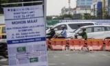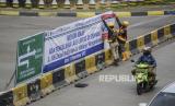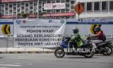 Pengendara melintas di dekat spanduk sosialisasi pengalihan arus lalu lintas di Jalan Gajah Mada, Jakarta, Senin (14/11/2022). Simpang Gajah Mada Plaza atau persimpangan antara Jalan Gajah Mada, Jalan Hayam Wuruk, Jalan Sukarjo Wiryopranoto dan Jalan KH Zainul Arifin, ditutup karena ada pengerjaan konstruksi CP202 MRT Jakarta Fase 2A. Republika/Putra M. Akbar (FOTO : Republika/)