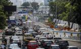 Sejumlah kendaraan terjebak kemacetan dampak dari pengalihan arus lalu lintas di Jalan Gajah Mada, Jakarta, Senin (14/11/2022). Simpang Gajah Mada Plaza atau persimpangan antara Jalan Gajah Mada, Jalan Hayam Wuruk, Jalan Sukarjo Wiryopranoto dan Jalan KH Zainul Arifin, ditutup karena ada pengerjaan konstruksi CP202 MRT Jakarta Fase 2A. Republika/Putra M. Akbar (FOTO : Republika)