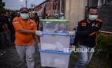 Tim Inafis membawa barang bukti usai melakukan olah TKP penemuan empat jasad di Perumahan Citra Grand Extension, Kalideres, Jakarta, Rabu (16/11/2022). Tim gabungan dari Inafis Polri, Puslabfor Bareskrim Polri, Dokter Forensik, Polda Metro Jaya dan Polres Metro Jakarta Barat melakukan olah TKP untuk menyelidiki kasus penemuan empat jasad yang tewas mengenaskan. (FOTO : Republika/Putra M. Akbar)