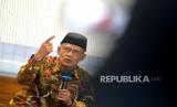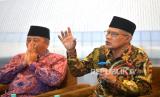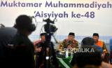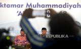 REPUBLIKA.CO.ID, YOGYAKARTA -- Ketua Umum PP Muhammadiyah Haedar Nashir (kiri) menyampaikan paparan persiapan pembukaan Muktamar ke-48 di PP Muhammadiyah, Yogyakarta, Rabu (16/11/2022). Pembukaan Muktamar ke-48 Muhammadiyah rencananya pada Sabtu (19/11/2022) di Stadion Manahan, Surakarta dan akan dibuka oleh Presiden Joko Widodo. Sekitar 17 ribu undangan dan penggembira akan meramaikan pembukaan nanti