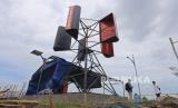 REPUBLIKA.CO.ID, INDRAMAYU -- Perangkat desa menunjukkan instalasi pembangkit listrik tenaga angin di desa Sindang, Indramayu, Jawa Barat, Rabu (16/11/2022).