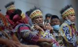 Perwakilan masyarakat Papua Barat Daya saat menyaksikan rapat paripurna ke-10 masa persidangan II tahun 2022-2023 di Kompleks Parlemen, Senayan, Jakarta, Kamis (17/11/2022). Dalam Rapat Paripurna tersebut DPR mengesahkan Rancangan Undang-Undang (RUU) tentang Pembentukan Provinsi Papua Barat Daya menjadi Undang-Undang (UU). Republika/Prayogi. (FOTO : Republika/Prayogi)