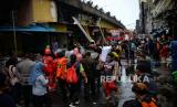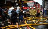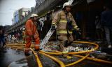 REPUBLIKA.CO.ID, JAKARTA -- Pedagang menyelamatkan barang dagangan saat proses pendinginan di Pasar Pagi Asemka, Jakarta, Jumat (18/11/2022). Kebakaran terjadi sekitar pukul 11.30 WIB yang menghanguskan kurang lebih 20 ruko yang di duga akibat korsleting listrik. Sebanyak 14 unit pemadam kebakaran dikerahkan untuk pemadaman.