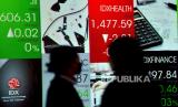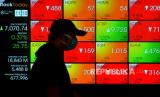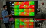 Karyawan melintas di dekat layar pergerakan Indeks Harga Saham Gabungan (IHSG) di gedung Bursa Efek Indonesia, Jakarta, Jumat (18/11/2022). IHSG ditutup di zona hijau pada perdagangan akhir pekan ini atau menguat 37,19 poin atau 0,53% ke level 7.082.181. (FOTO : Republika/Prayogi)
