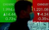 Karyawan melintas di dekat layar pergerakan Indeks Harga Saham Gabungan (IHSG) di gedung Bursa Efek Indonesia, Jakarta, Jumat (18/11/2022). IHSG ditutup di zona hijau pada perdagangan akhir pekan ini atau menguat 37,19 poin atau 0,53% ke level 7.082.181.  (FOTO : Republika/Prayogi)