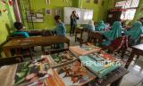 REPUBLIKA.CO.ID, DEPOK -- Sejumlah siswa mengikuti kegiatan belajar mengajar di SDN Pondok Cina 1, Depok, Jawa Barat, Jumat (18/11/2022). Kegiatan belajar mengajar (KBM) di sekolah tersebut sudah empat hari berlangsung tanpa guru dan digantikan oleh relawan atau wali murid, disebabkan protes terkait relokasi sekolah.