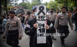 Dalam aksinya, mereka mendesak pihak kepolisian untuk segera menuntaskan kasus dugaan penganiayaan oleh aparat.