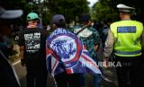 Massa suporter Aremania melakukan aksi saat mengantar keluarga korban menyampaikan laporan terkait Tragedi Kanjuruhan di depan Mabes Polri, Jakarta, Sabtu (19/11/2022). Dalam aksinya, mereka mendesak pihak kepolisian untuk segera menuntaskan kasus dugaan penganiayaan serta meminta kejelasan atas pelaporan yang diajukan keluarga korban dalam Tragedi Kanjuruhan yang menyebabkan sebanyak 135 korban jiwa. Republika/Thoudy Badai (FOTO : Republika/Thoudy Badai)