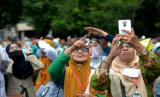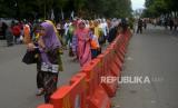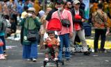 Penggembira ikut memeriahkan Pembukaan Muktamar ke-48 Muhammadiyah dan Aisyiyah dari luar Stadion Manahan, Surakarta, Jawa Tengah, Sabtu (19/11/2022). Karena keterbatasan kursi di dalam stadion, penggembira Muktamar tetap ikut memeriahkan dari luar dan melihat layar besar yang sudah disediakan panitia. Banyak penggembira yang membawa anggota keluarga untuk memeriahkan agenda besar lima tahunan Muhammadiyah ini. (FOTO : Republika/Wihdan Hidayat)