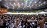 Suasana pemungutan suara elektronik atau e voting saat Muktamar ke-48 Muhammadiyah di Edutorium UMS, Surakarta, Jawa Tengah, Sabtu (19/11/2022) malam. Sebanyak 50 bilik suara disiapkan panitia pemilihan untuk pemungutan suara dari 2700an peserta Muktamar ke-48 Muhammadiyah. Mereka akan memilih 13 anggota tetap PP Muhammadiyah masa jabatan 2022 hingga 2027. (FOTO : Republika/Wihdan Hidayat)