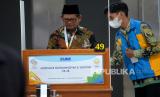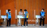Peserta Muktamar menggunakan hak suara saat pemungutan suara elektronik atau e voting saat Muktamar ke-48 Muhammadiyah di Edutorium UMS, Surakarta, Jawa Tengah, Sabtu (19/11/2022) malam. Sebanyak 50 bilik suara disiapkan panitia pemilihan untuk pemungutan suara dari 2700an peserta Muktamar ke-48 Muhammadiyah. Mereka akan memilih 13 anggota tetap PP Muhammadiyah masa jabatan 2022 hingga 2027. (FOTO : Republika/Wihdan Hidayat)