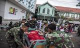 Anggota TNI mengevakuasi pasien pasca gempa bumi di halaman RSUD Cianjur, Jalan Pasirgede Raya, Kabupaten Cianjur, Senin (21/11/2022). Berdasarkan keterangan Badan Nasional Penanggulangan Bencana (BNPB) total saat ini korban meninggal dunia mencapai 46 orang dan 700 korban terluka pasca gempa bumi 5,6 SR di Kabupaten Cianjur. Republika/Abdan Syakura (FOTO : ABDAN SYAKURA/REPUBLIKA)