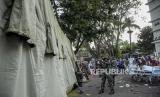 Anggota TNI membangun tenda pasca gempa bumi di halaman RSUD Cianjur, Jalan Pasirgede Raya, Kabupaten Cianjur, Senin (21/11/2022). Berdasarkan keterangan Badan Nasional Penanggulangan Bencana (BNPB) total saat ini korban meninggal dunia mencapai 46 orang dan 700 korban terluka pasca gempa bumi 5,6 SR di Kabupaten Cianjur. Republika/Abdan Syakura (FOTO : ABDAN SYAKURA/REPUBLIKA)