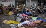 Warga merawat keluarganya pasca gempa bumi di halaman RSUD Cianjur, Jalan Pasirgede Raya, Kabupaten Cianjur, Senin (21/11/2022). Berdasarkan keterangan Badan Nasional Penanggulangan Bencana (BNPB) total saat ini korban meninggal dunia mencapai 46 orang dan 700 korban terluka pasca gempa bumi 5,6 SR di Kabupaten Cianjur. Republika/Abdan Syakura (FOTO : ABDAN SYAKURA/REPUBLIKA)