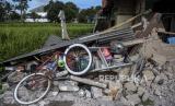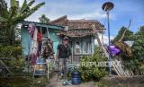 REPUBLIKA.CO.ID, CIANJUR -- Warga berada di depan rumahnya yang rusak pasca gempa bumi di Kampung Selakawung, Kecamatan Cilaku, Kabupaten Cianjur, Selasa (22/11/2022). Berdasarkan data dari BPBD Kabupaten Cianjur hingga Senin (21/11/2022) pukul 20.00 WIB jumlah bangunan dan rumah rusak akibat gempa bumi mencapai 2.345 unit serta 13.784 orang mengungsi.