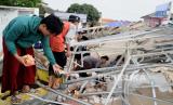 Gempa membuat masjid, pesantren, minimarket dan puluhan rumah warga rusak. .
