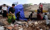 Warga mencari makanan dari salah satu mini market yang roboh di Kampung Kadudampit, Rancagoong, Cianjur, Jawa Barat, Selasa (22/11/2022). Gempa berkekuatan 5,6 SR yang mengguncang Cianjur pada Senin (21/11/2022), membuat masjid, pesantren, minimarket dan puluhan rumah warga rusak. Republika/Putra M. Akbar (FOTO : Republika/Putra M. Akbar)