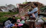 Warga berada diluar rumah untuk mengantisipasi gempa susulan di Kampung Kadudampit, Rancagoong, Cianjur, Jawa Barat, Selasa (22/11/2022). Gempa berkekuatan 5,6 SR yang mengguncang Cianjur pada Senin (21/11/2022), membuat masjid, pesantren, minimarket dan puluhan rumah warga rusak. Republika/Putra M. Akbar (FOTO : Republika/Putra M. Akbar)