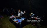 Pengungsi terdampak gempa berada di dalam tenda posko pengungsian di Taman Prawatasari, Cianjur, Jawa Barat, Selasa (22/11/2022). Gubernur Jawa Barat Ridwan Kamil mengatakan sebanyak 14 posko pengungsian disediakan untuk memfasilitasi 13.784 pengungsi yang terdampak gempa berkekuatan 5,6 SR di Cianjur. (FOTO : Republika/Putra M. Akbar)